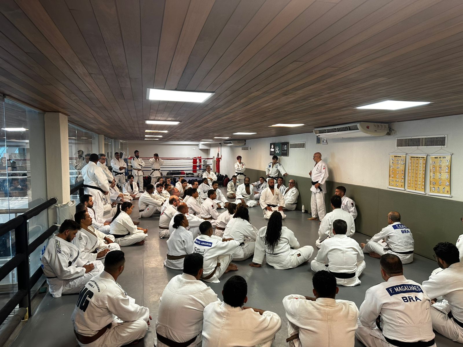 Meus amigos e minhas amigas do judô. Quero expressar minha imensa gratidão pela oportunidade de vivenciar, hoje, momentos tão especiais no tatame da Bodytech Savassi, repleto de energia e dedicação. Foi uma honra compartilhar do convívio de todos vocês, tanto no período da manhã quanto no da tarde. Registro meus parabéns aos palestrantes, sensei Vladimir Roberto e sensei André Fernandes, pela brilhante condução dos trabalhos e pela didática exemplar. Tenho plena certeza de que todos nós saímos enriquecidos com os conhecimentos atualizados que nos foram transmitidos. O judô mineiro só alcança a relevância que tem hoje graças ao empenho de cada um de vocês, que buscam constantemente aprimorar-se, ampliar seus conhecimentos e, sobretudo, fortalecer a união que mantém vivo o espírito do judô em nosso estado. Sinto-me profundamente orgulhoso ao acompanhar os eventos promovidos pela Federação Mineira de Judô e testemunhar o comprometimento de todos. Deixo, assim, meu especial agradecimento a cada um. Muito obrigado!